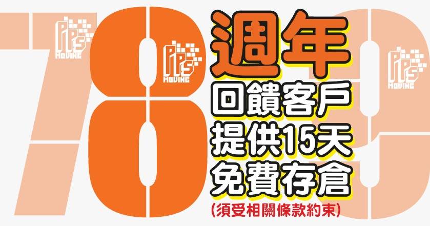 逐件計搬運有限公司成立 8 週年回饋客戶,提供15天免費存倉。