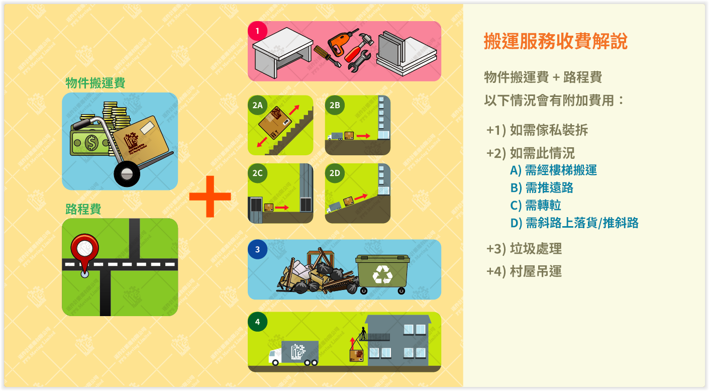 搬屋費用已經包括提供最少3名搬運員及1輛5.5噸貨車,以及提供傢俬電器的基本包裝。