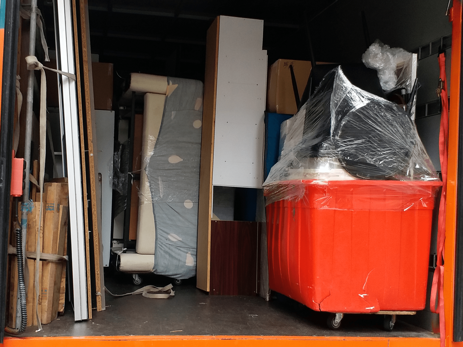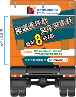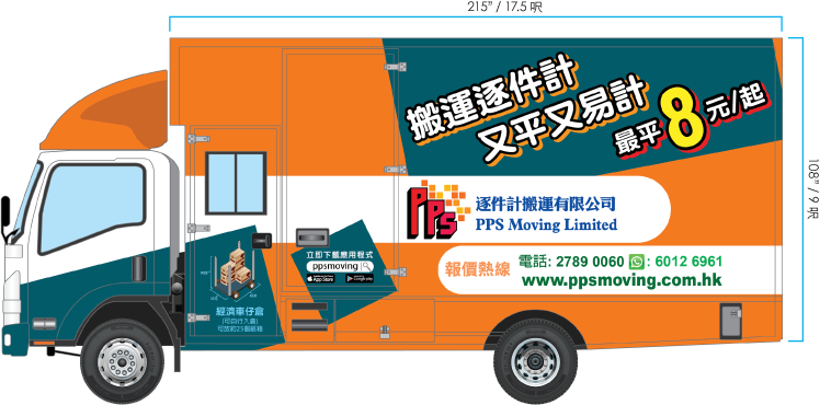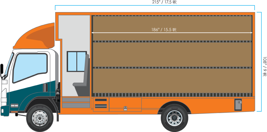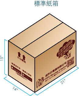 車長 15.5呎 X 闊度 7呎 = 面積 108呎。紙箱載滿量達 130個(21 X 14 X 15)吋